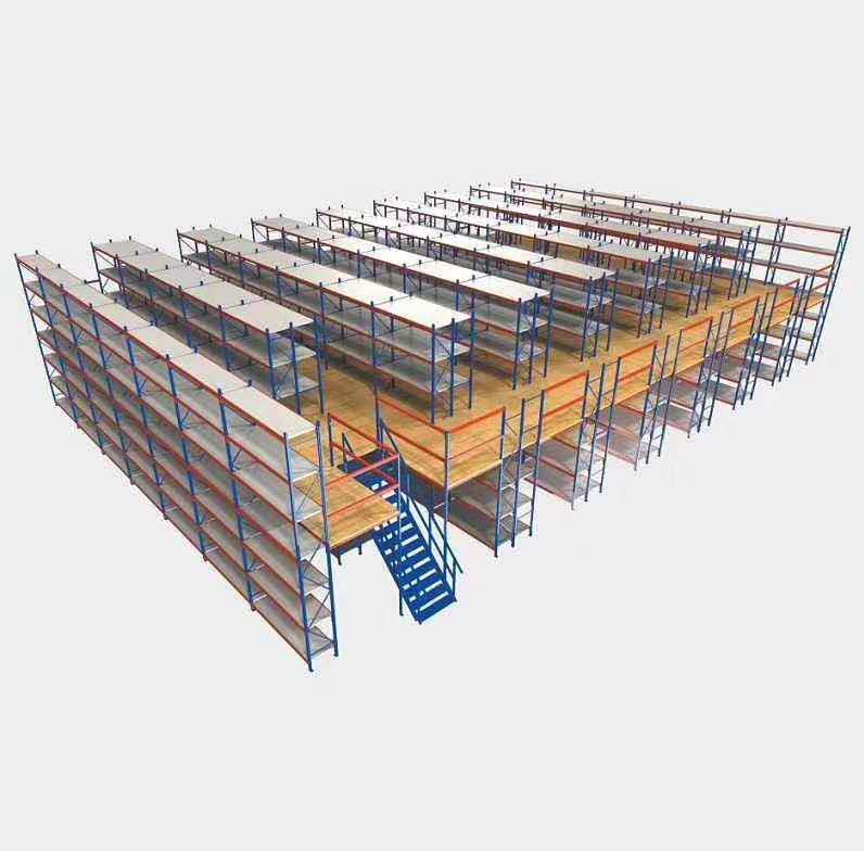 阁楼式货架是用货架做楼面支撑,可设计成多层楼层(通常2-3层)设置有楼梯和货物提升电梯等,适用于库房较高,货物轻小,人工存取。储货量大的情况下使用提升机和液压升降平台。